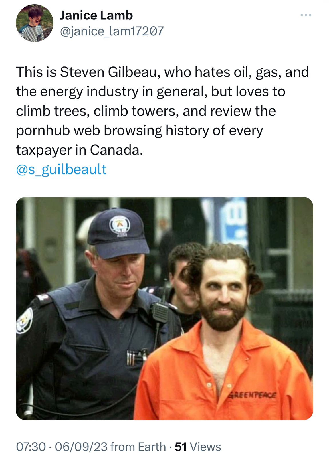 In another post on X, Steven Guilbeault, Canada’s environment and climate change minister is shown as being arrested with a malicious allegation accompanying it.